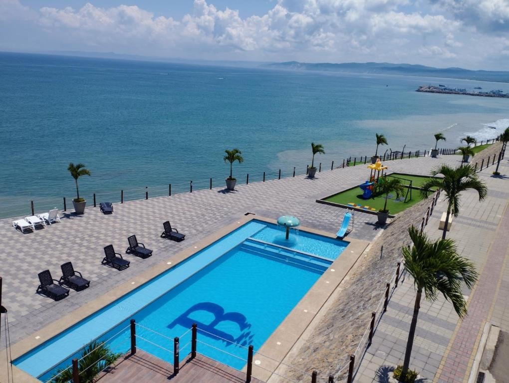 Diviértete con toda tu familia en este alojamiento con estilo de lujo excelente ubicación a 20m de la playa una vista espectacular en el ultimo piso del edifico podras disfrutar de toda crucita con fondo a la ciudad de manta.
