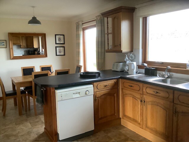Greenfield es una casa tradicional de una sola planta en una zona tranquila a menos de un kilómetro y medio del centro de la ciudad de Portree. La casa tiene vistas a un jardín privado que continúa al lado de la casa, donde hay áreas de comedor y secado al aire libre. Hay un paseo por el bosque muy cerca de la casa. Hay estacionamiento privado para dos autos. Hay calefacción central en todas partes y un lavavajillas para tu comodidad. Hay un supermercado a 10 minutos a pie de la casa.