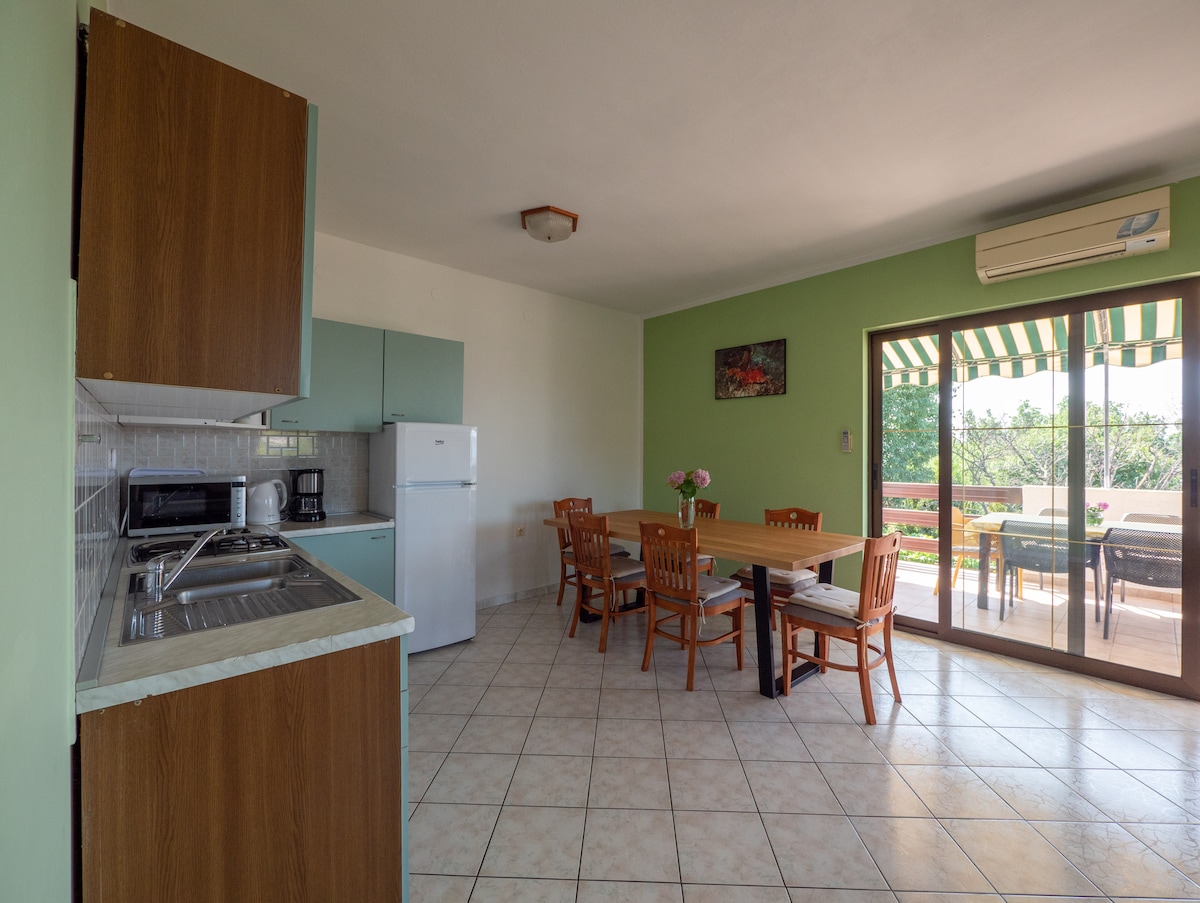 Esta propiedad ofrece acceso a un balcón, aparcamiento privado gratuito, barbacoa y wifi gratuito. Este apartamento de 1 dormitorio con vistas al jardín cuenta con TV de pantalla plana, cocina totalmente equipada con nevera, lavadora y baño privado con ducha, secador de pelo y artículos de aseo. Toallas y ropa de cama están disponibles en las instalaciones. La playa más cercana está a 2 km, mientras que Zadar está a 25 km del apartamento.