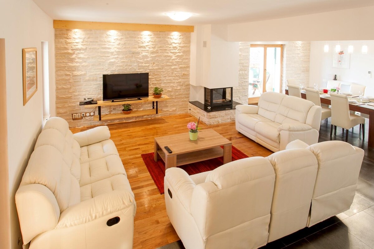 ¡Te damos la bienvenida a Villa Janak! Una villa de lujo con vistas a Posedarje y al Adriático, y a poca distancia a pie del pueblo y del mar. La villa está rodeada de olivos e higueras y situada en una tranquila colina con campos. Este impresionante oasis tiene trabajo de piedra en todas partes, una piscina de agua salada y una parrilla al aire libre con una hermosa terraza para las mejores cenas al atardecer. La villa es una mezcla perfecta de encanto rústico exterior y diseño moderno interior y comodidades para una estancia elegante y cómoda.