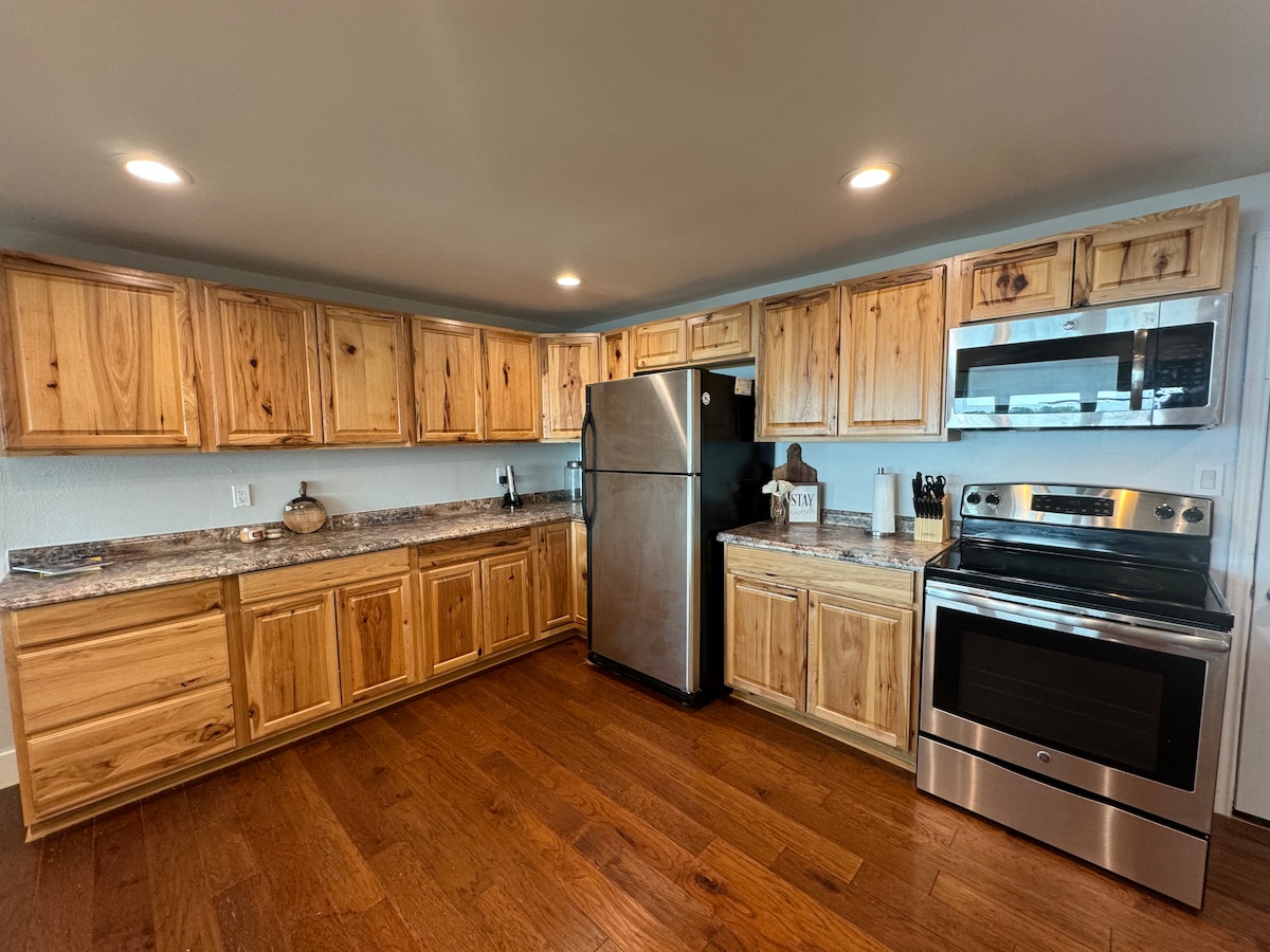 Escapa de la ciudad para rejuvenecerte en la naturaleza. Esta casa (720 pies cuadrados) se encuentra en 14,5 acres con acceso al río Brazos (acceso privado y comunitario). ¡Esta comunidad cerrada escondida en las montañas de Palo Pinto tiene vistas que te dejarán sin palabras! Después de un día de pesca/natación/paseo en kayak (kayaks incluidos), disfruta cocinando la cena al aire libre en la Blackstone seguida de fogatas con s'mores. Disfruta de una bebida fría en el columpio del porche u opta por jugar al ping pong, al corn hole o a otros juegos. Verás vacas, pájaros y ciervos.