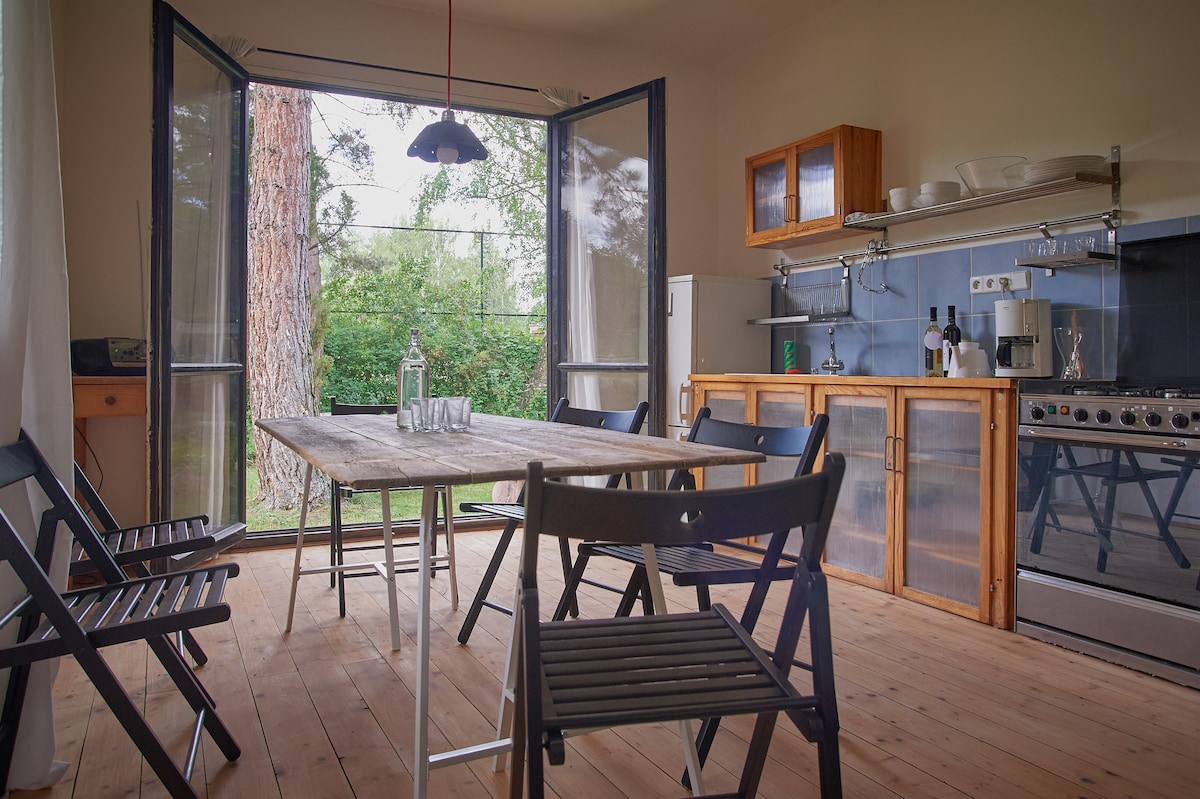 Lujoso apartamento villa cubista en una tranquila zona residencial verde. El apartamento amueblado totalmente original con entrada privada tiene una superficie de 75 m². Parqueadero seguro, frente a la casa. Hermoso jardín grande. Cocina (totalmente equipada), dormitorio para 2 personas (cama para bebés disponible), sala de estar (podemos organizar un colchón para una tercera persona, idealmente un niño o un adolescente), baño con bañera y ducha (albornoces incluidos). Lavadora y secadora. Se admiten perros por una tarifa de 10 EUR/día.