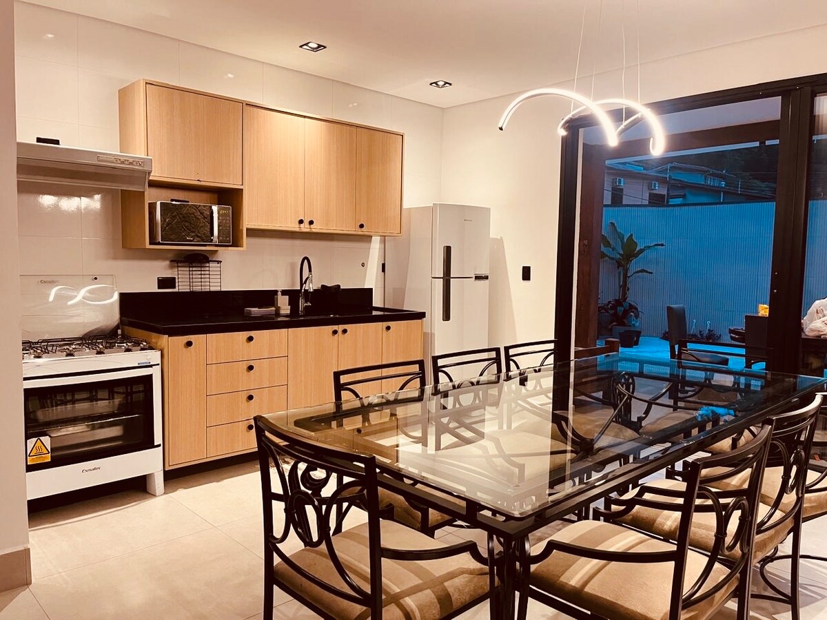 Situada en Ubatuba frente a la playa de Toninhas, ¡la casa y la playa están separadas solo por una puerta! ¡Pie en la arena de verdad! Casa totalmente decorada y equipada, con vistas al mar y a la montaña. ¡Súper ventilada y acogedora! ¡Perfecta para divertirse con la familia y los amigos! Ideal para quienes viajan con niños. Ven a descansar y dormir escuchando las olas del mar en Terra Nova Beach House. ¡No querrás irte! ATENCIÓN: NO HACEMOS NINGÚN TIPO DE CONTACTO "FUERA" DE AIRBNB