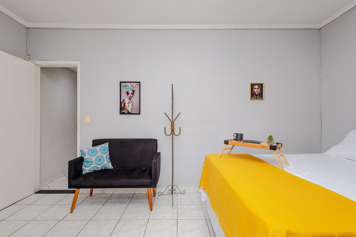 CHECK-OUT FLEXIBLE (dependiendo de la disponibilidad). Espacio familiar, siempre priorizando la comodidad y el bienestar de los huéspedes, siendo una gran opción costo-beneficio. Ideal para hasta 5 personas, todo cerca, heladerías, pizzerías, bares, restaurantes, bancos, etc. Ni siquiera necesita sacar el coche del garaje. Tenga cuidado con los niños, ya que las ventanas no tienen barandillas. Disfrute de la ciudad que más crece en Brasil. Solo se aceptan animales pequeños bajo petición, sin costo adicional.