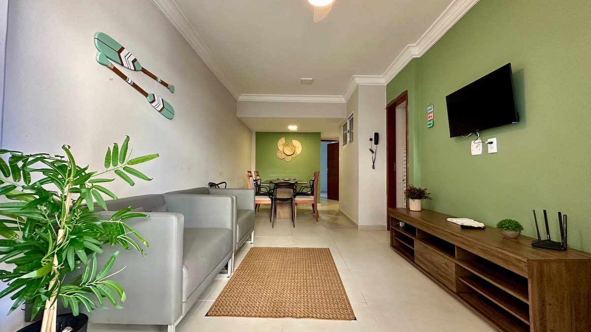 Apartamento reformado, moderno y acogedor junto al mar, perfecto para disfrutar de Guarapari de la mejor manera, el condominio cuenta con conserjería las 24 horas y toda la estructura y seguridad de un hotel, ya que anteriormente se encontraba el Hotel Bristol. Está cerca de restaurantes, supermercados, farmacias, tiendas, ferias de artesanía, a 5 minutos a pie de la sala de conciertos B27 y de las playas más famosas del centro: Areia Preta (50 m), Castanheiras (300 m) y Praia dos Namorados (650 m)