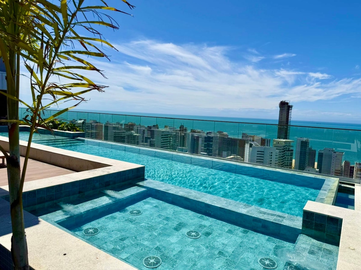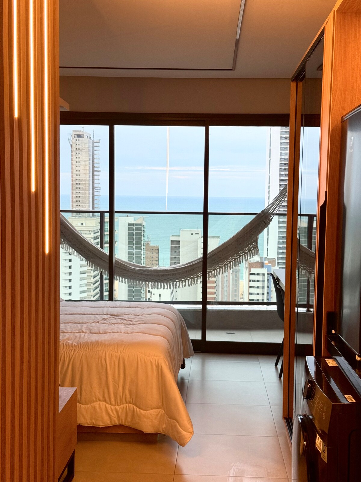 Inserido no Beach Class Meireles, o Studio Jade, no 14º andar, oferece um ambiente confortável e bem distribuído, com varanda privativa, ar-condicionado, Wi-Fi e estrutura ideal para descansar após os passeios. O condomínio conta com piscina de borda infinita no rooftop, academia, garagem, lavanderia, coworking, guarda-bagagem e minimercado. A poucos metros da Beira-Mar, com fácil acesso à Praia de Iracema, Dragão do Mar, Centro, Praia do Futuro, Aeroporto e Beach Park.