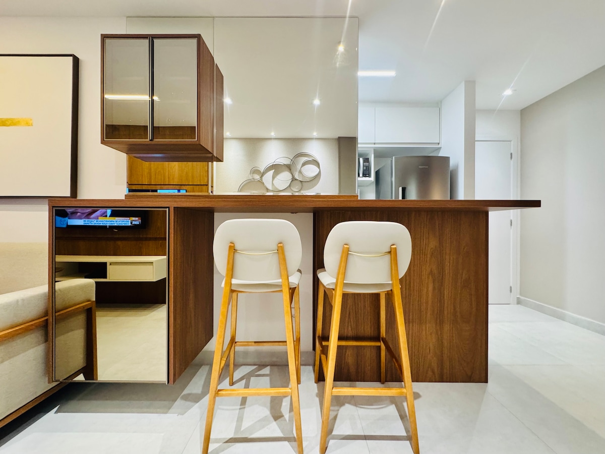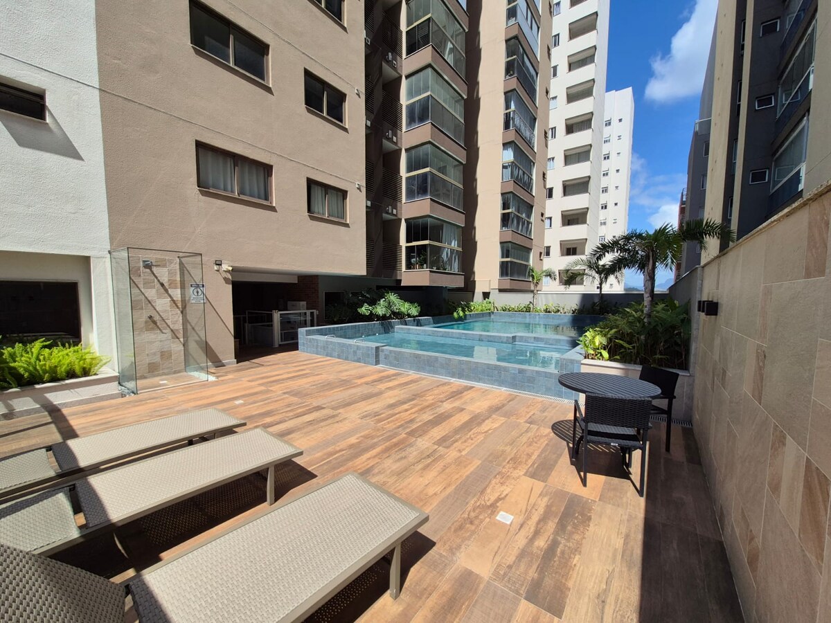 Apartamento en el piso 14, finamente decorado y muy bien equipado para su comodidad; Habitación con aire acondicionado, Smart TV, ropa de cama y baño completos; Comodidad de mercado, panadería y farmacia en la planta baja del edificio; Una plaza de aparcamiento cubierta en el edificio, conserjería 24 horas; Balcón con hamaca, espacio para cerveza y sillones para admirar la vista; Cocina completa con zona de café; Wifi 360mb.