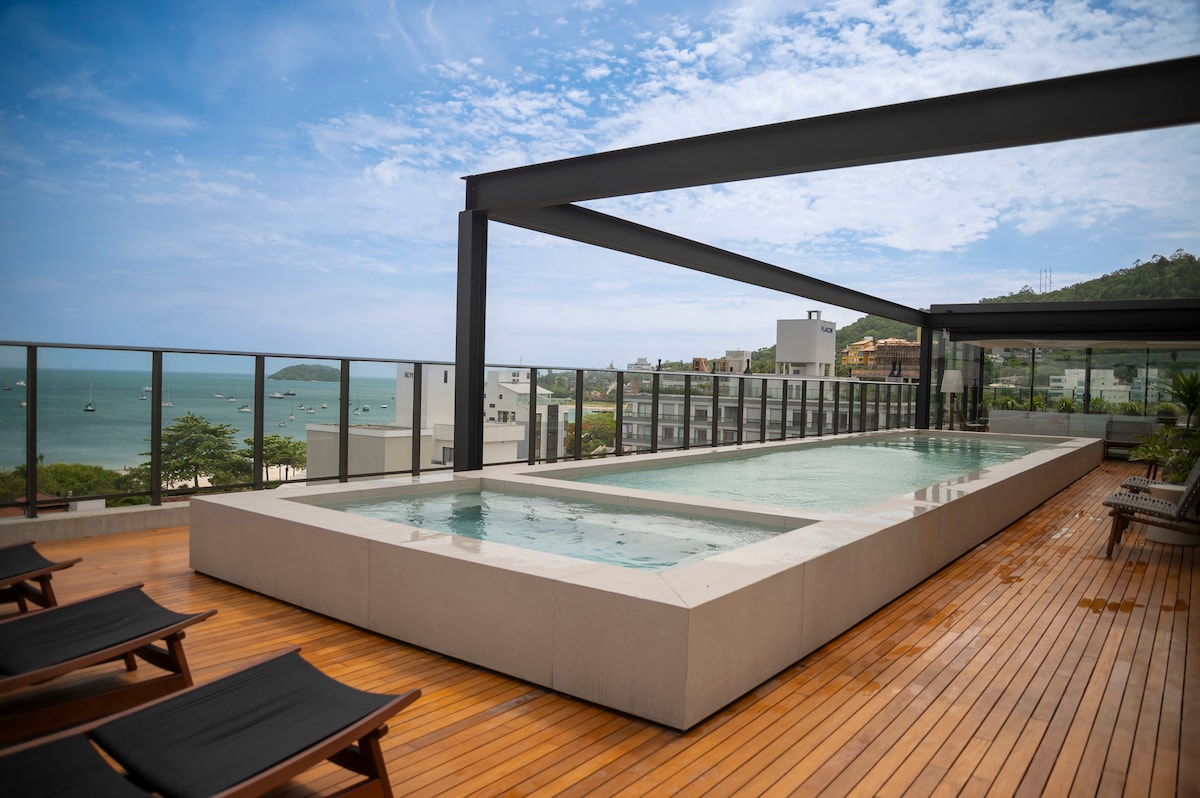 Apartamento de lujo completamente equipado con vista al mar en Jurerê Internacional, con suite privada y cama doble, que garantiza comodidad y confort. Ofrece una experiencia única con vistas increíbles al mar, al barrio y al atardecer. A solo 150 metros de la playa, cerca de restaurantes y Open Shopping. En verano, hay servicio de playa con Beach Boy, y sillas y sombrillas disponibles todo el año. En la planta baja, se encuentra el restaurante italiano Devito y acceso al Beach Club Acqua.