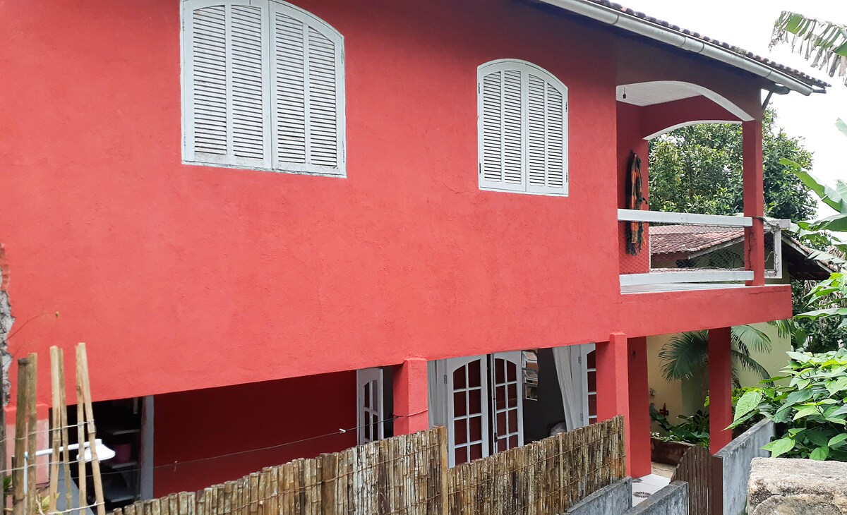 Acogedora cabaña con vistas perfectas a la playa de Praia Vermelha do Centro; rodeada de bosque atlántico. Varias especies de aves, colibríes, ardillas y hermosas mariposas, comparten este espacio con nosotros. Nuestra casa está cerca del barrio de Itaguá, donde hay supermercados, farmacias, panaderías, tiendas y restaurantes.