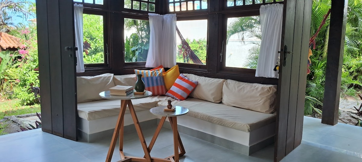 Casa hermosa y recién reformada. Todo nuevo y con un diseño sencillo, buziano y acogedor. La ubicación es ideal para los amantes de la playa de Geribá. ¡En 1 minuto a pie ya estamos pisando la arena! Tenemos sombrilla y sillas de playa. La casa tiene 1 suite, 1 habitación triple, sala de estar con cocina americana, balcón y un amplio jardín detrás de la casa. Nuestra antigua casa de pescadores se ha renovado y es un sueño hecho realidad tenerla tan agradable para recibir a nuestros huéspedes. Siempre preparamos lo mejor para ti