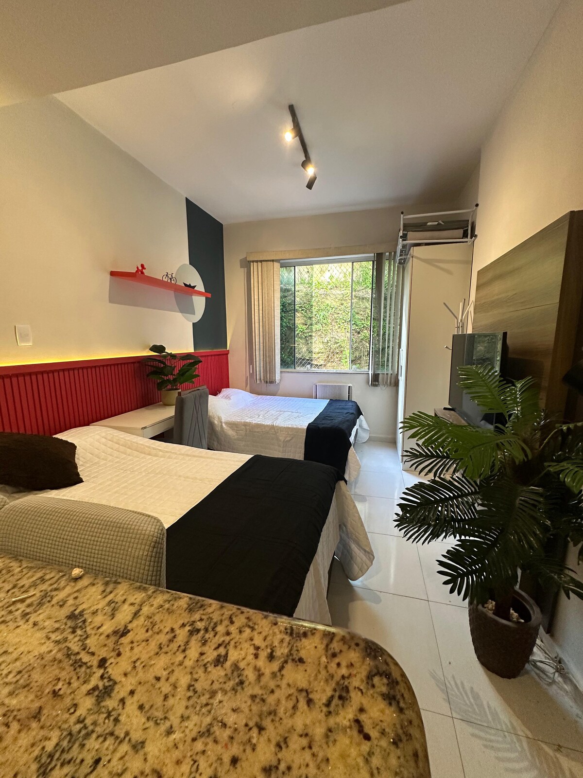 Moderno estudio de 27 m2, hermosa vista lateral de la playa de Copacabana. Cerca de bancos, restaurantes, bares, supermercados, farmacias, tiendas y a poca distancia de los principales lugares de interés. Cama doble, sofá cama, aire acondicionado Spirit, ventilador de techo, nevera, microondas, vitrocerámica, licuadora, sandwichera, horno, lavadora, Smart TV de 50" con Netflix, wifi, televisión por cable. Se proporcionan sábanas de cama y baño. Edificio Misto, con conserje las 24 horas. ¡RESERVA YA!