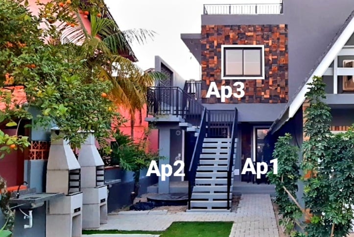 Apartamento com linda vista de Bombinhas, Bombas e Porto Belo. Apto de 1 quarto (casal - cama queen size), cozinha completa, banheiro, sala e sacada c/rede. Moderno, decoração clean, ar condicionado e TV led. A propriedade possui pátio, piscina, churrasqueiras e há 1 vaga de estacionamento (compartilhados). Ficamos 5min a pé das praias: Lagoinha, Sepultura e Retiro dos Padres, zona tranquila e segura, 15 min a pé do centro de Bombinhas. Acesso a cobertura por escadas.