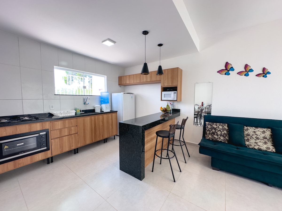 Disfrute de momentos de relajación con toda la familia en este alojamiento tranquilo. Excelente ubicación, fácil acceso y en una zona segura, encontrarás la mayor comodidad para disfrutar al máximo de tu estancia. IMPORTANTE: - Se realizarán limpiezas cada dos días (excepto los domingos) en las áreas internas y externas de la casa, así como el mantenimiento del jardín y la piscina. - El lavado de la ropa de cama se realizará en las máquinas disponibles para ese uso, ubicadas dentro de la casa