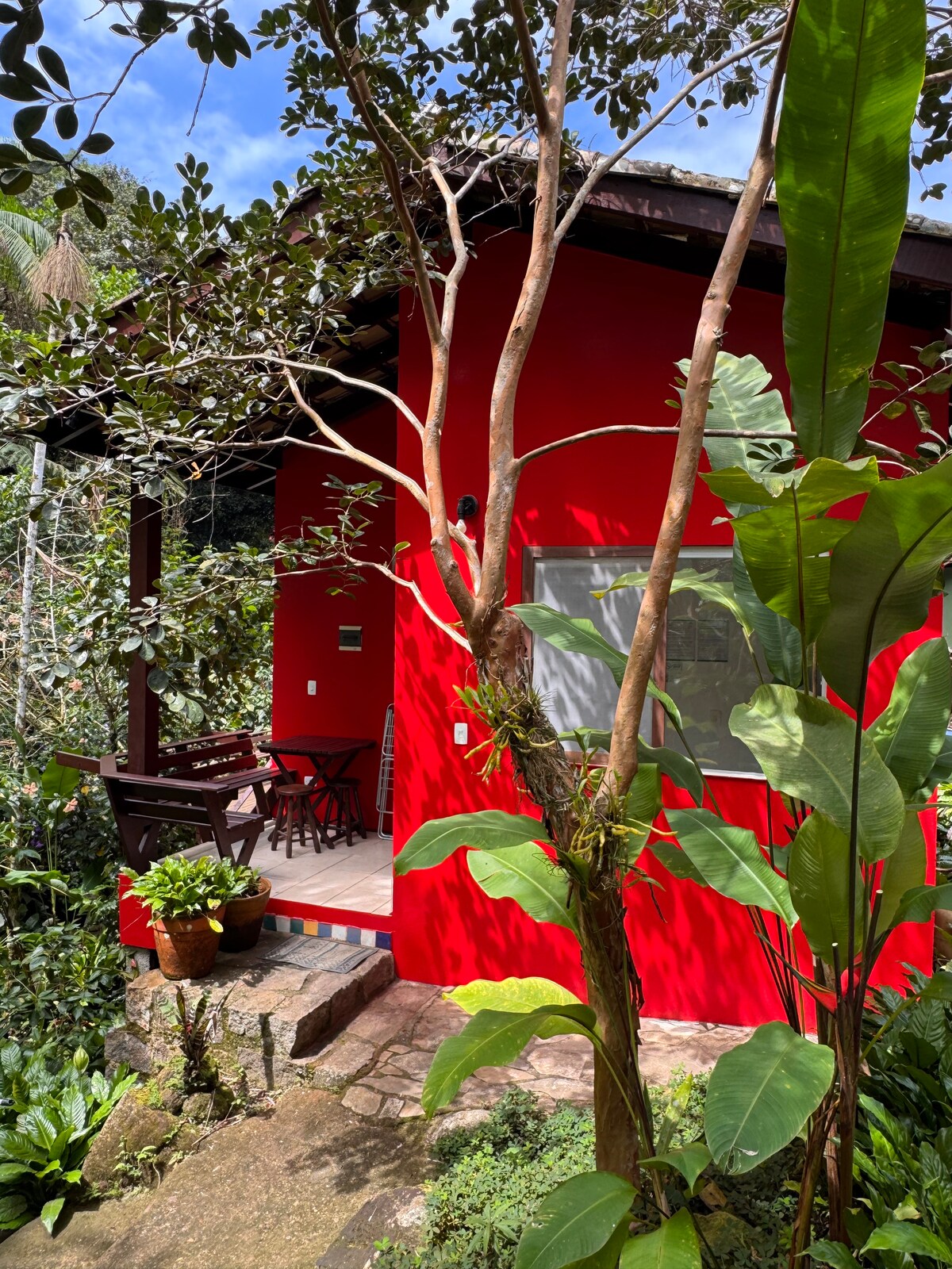 Relájese en este lugar único y tranquilo. Rodeado de bosque atlántico y acunado por el sonido del arroyo, aquí la sensación es de paz y tranquilidad. Estamos ubicados en una calle lateral de la calle principal de Trinidad, a 5 minutos a pie de las tiendas locales y a 7 minutos de las principales playas.