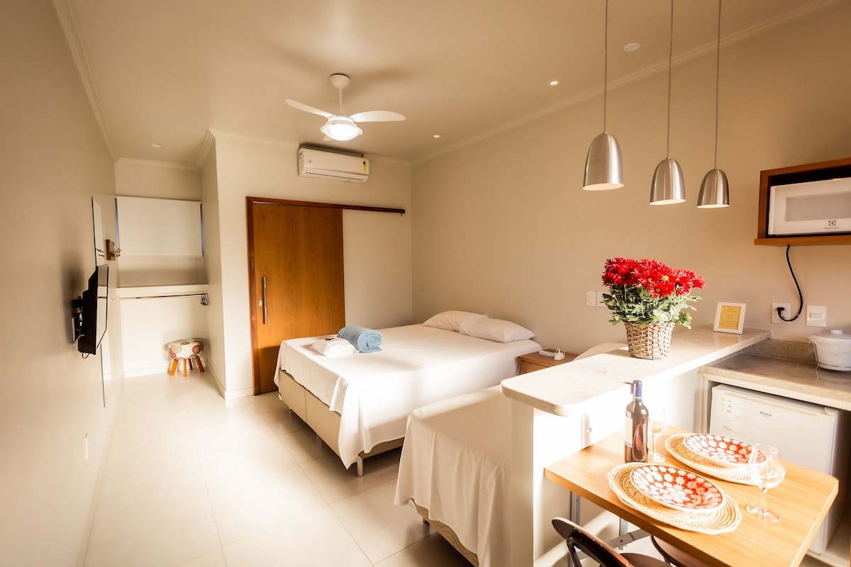 Suíte espaçosa com Varanda, Ar e Mini-Cozinha