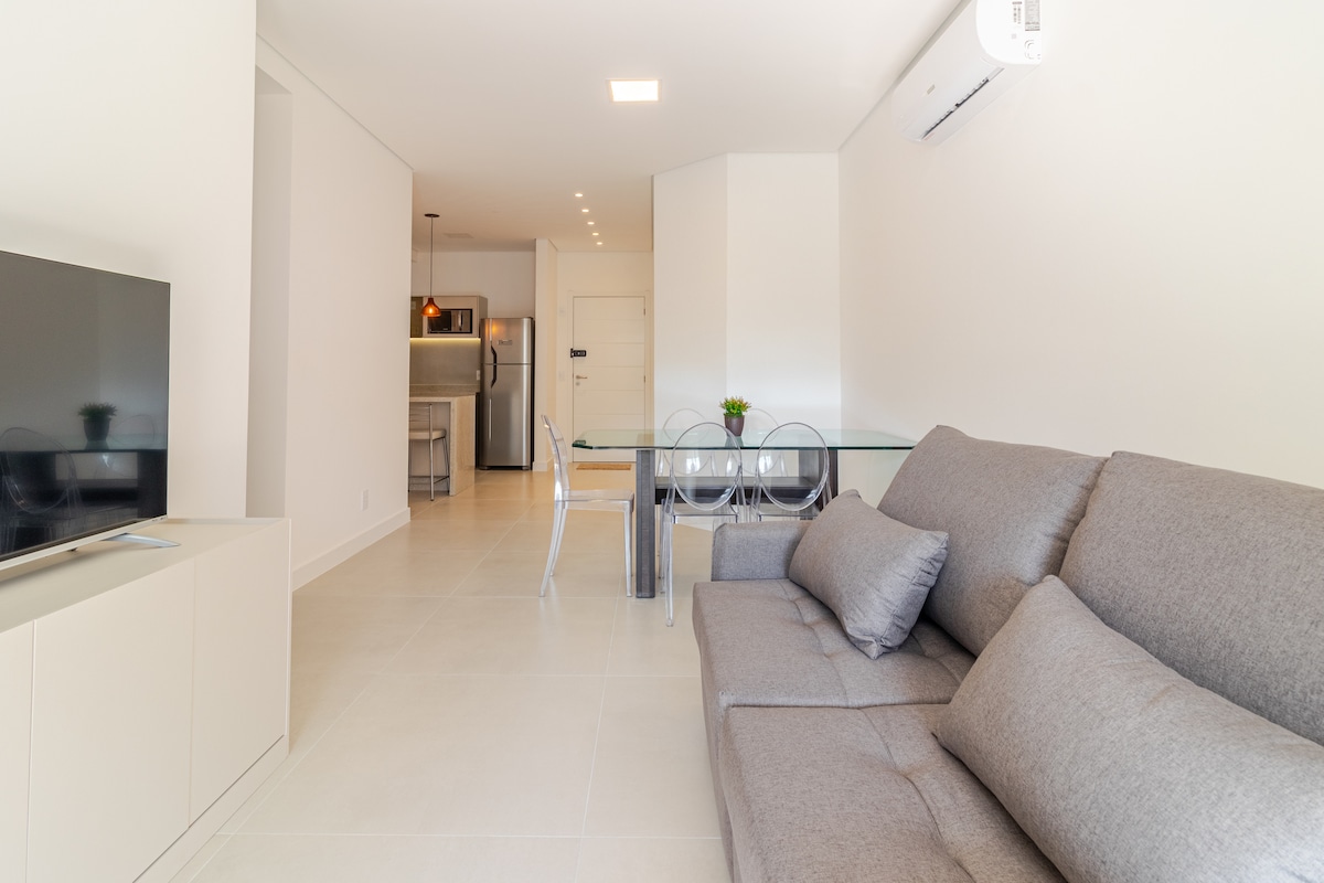 Apartamento de alto nivel ubicado en el mejor condominio de Praia dos Ingleses con infraestructura completa y acceso privado a la playa (¡a pie de arena!). Cuenta con piscina para adultos y niños, barbacoa en el jardín, gimnasio, sala de juegos, sala de juegos, portería 24 horas, garaje cubierto y lavandería, aire acondicionado (sala de estar y dormitorio). Proporcionamos ropa de cama, toallas de baño, 2 sillas de playa, 1 sombrilla. El apartamento tiene capacidad para 4 adultos y hasta 2 niños cómodamente.
