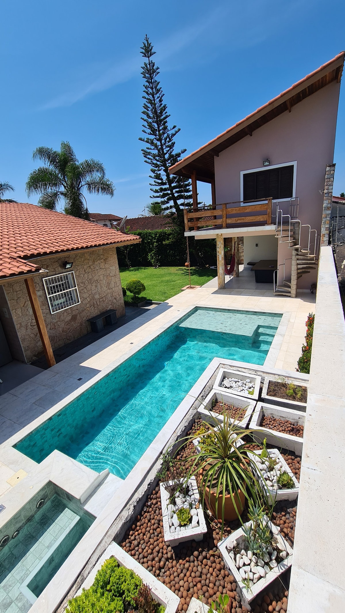 Casa en condominio, recientemente reformada con excelente ubicación. La casa tiene garaje para dos vehículos con estacionamiento cubierto y uno con estacionamiento abierto, una gran área con barbacoa, dos dormitorios grandes equipados con ventilador de techo, baño, sala de estar con TV de alta definición y cocina americana completa. Se encuentra a unos 100 metros del principal mercado del barrio y de la panadería Jureia. Cerca de varias cascadas, el río Guaraú (a tres minutos en coche) y la playa (a menos de dos minutos en coche)