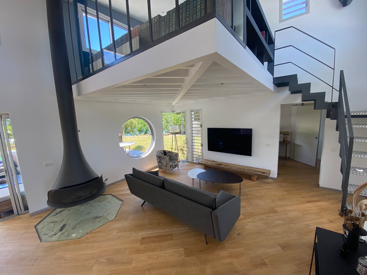 En un entorno idílico, ven y relájate en un bungalow de alta calidad ambiental ubicado en el bosque, con vistas al mar 180 °. 70 m2 totalmente equipados, concepto ecológico, cocina americana, cama doble, baño y WC separado (inodoro seco), gran terraza. A 30 minutos de Noumea, en un distrito tranquilo, en la puerta de entrada al Gran Sur, playa a 2 minutos. Suministro de un kayak de 2 lugares, esterillas de yoga, senderismo desde el bungalow.