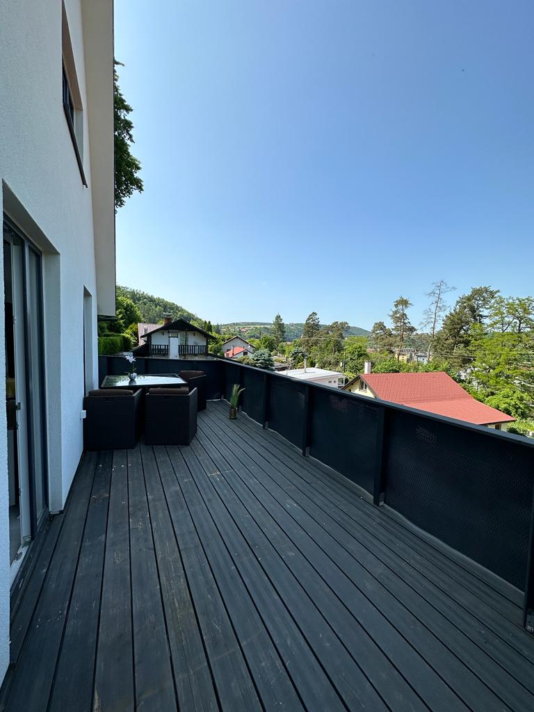Užijte si pobyt v malém moderním domku s úchvatným výhledem na skalnaté údolí řeky Vltavy, nacházejícím se v lese na skále, přímo nad ostrovem sv. Kiliána, kde byl v roce 999 založen jeden z prvních mužských klášterů v českých zemích. Vyhrazené místo na parkování a autobusová zastávka je 5 minut chůzí z kopce po pěšině. Možno absolvovat mnoho výletů po okolí - Vyhlídka Máj, Pikovická jehla, vodní nádrž Slapy nebo jen obyčejná procházka v místním lese.