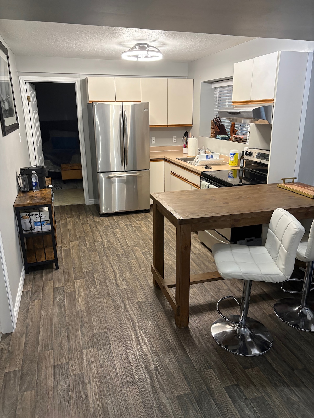 Spacious 900 sq ft private king suite 5 min to BC Ferries & hospital. Full kitchen, bathroom & in-suite laundry for easy longer stays. Large living room with extra sleeping space. Quiet area backing onto green space with big yard & fire pit (wood included). Pet friendly 🐾 (because trips are better when the whole family comes) 15-min walk to town, restaurants & parks. Perfect for traveling nurses, medical stays, ferry stopovers, or anyone needing a calm, comfy place to relax and unwind.