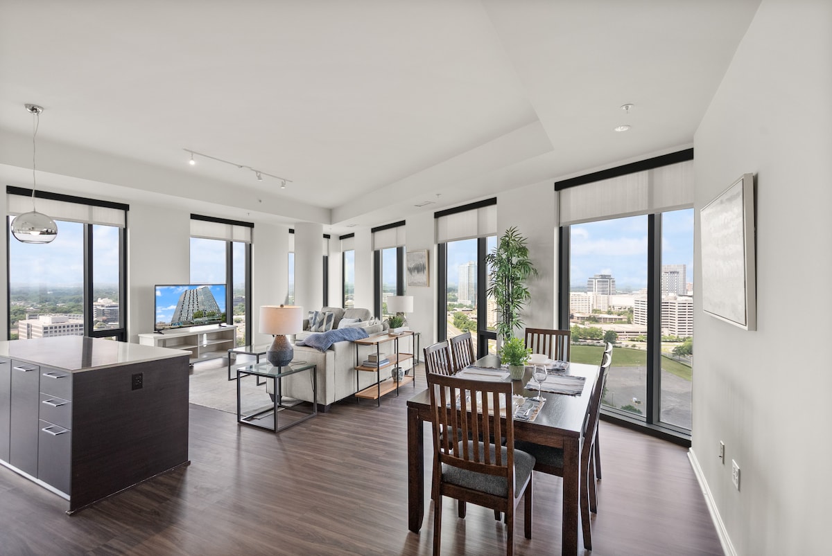 Our spacious 3-bedroom, 2-bathroom apartment is a true gem — large three-bedroom units are rarely available in Tysons especially in high-end buildings. Enjoy breathtaking city views, modern designer finishes, and hotel-style amenities all in one place. you’ll have direct access to upscale shopping, fine dining, and Metro connections to D.C. The apartment features floor-to-ceiling windows, a fully equipped gourmet kitchen, and premium furnishings curated for both comfort and style.