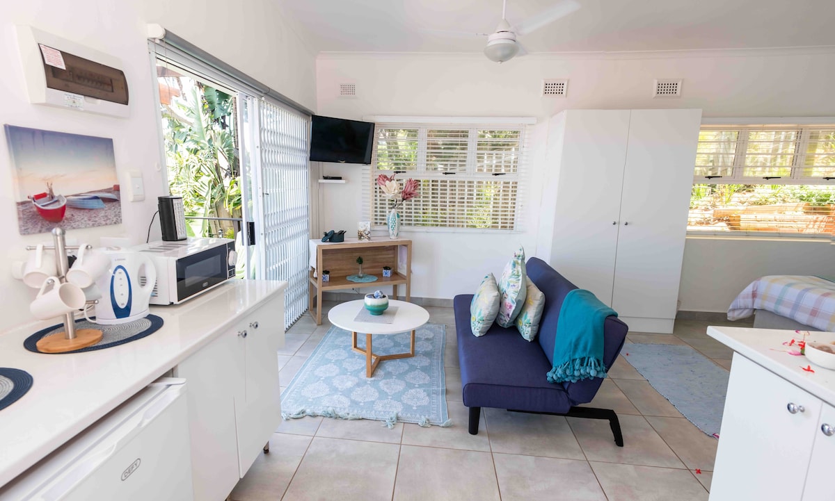 Ubicado en Simbithi, un lugar ecológico seguro, despierta y mira el mar, ve a dormir escuchando las olas a lo lejos. La unidad tiene su propia entrada y es privada. También puedo agregar una habitación adicional y un baño justo al lado. The Hideaway tiene una cama tamaño king, un baño con ducha y un salón/comedor con una pequeña cocina americana para preparar comidas sencillas o refrigerios para calentar. Es un espacio especial para relajarte y descansar. Tenga en cuenta que hay escaleras de roca natural en la unidad.