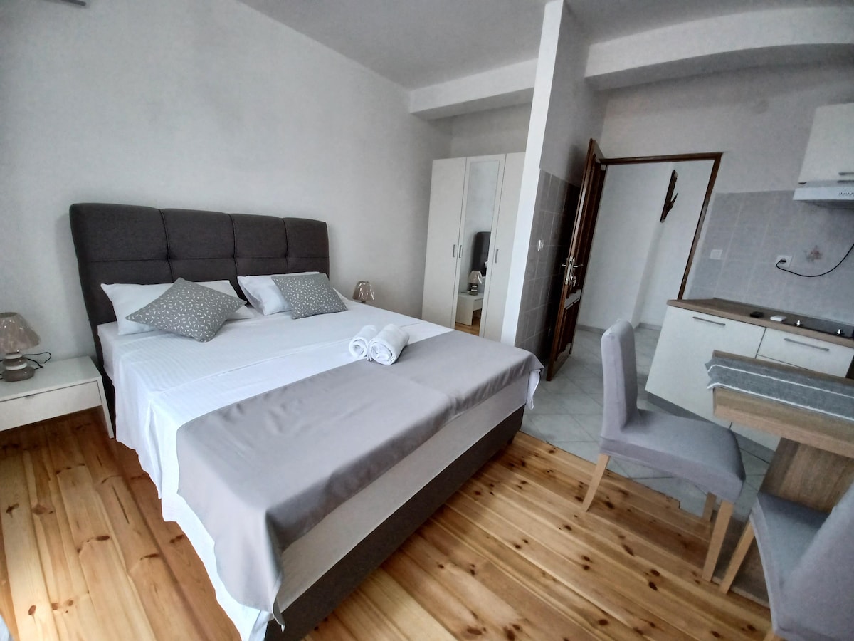 Este departamento está situado en el segundo piso de la casa ubicado en el hermoso lugar Privlaka,rodeado de largas playas de arena. Este es un apartamento estudio,tiene cama doble, baño y una pequeña cocina y terraza. La playa de arena más cercana está a unos 100 metros de la casa y también el restaurante, la cafetería y la tienda.