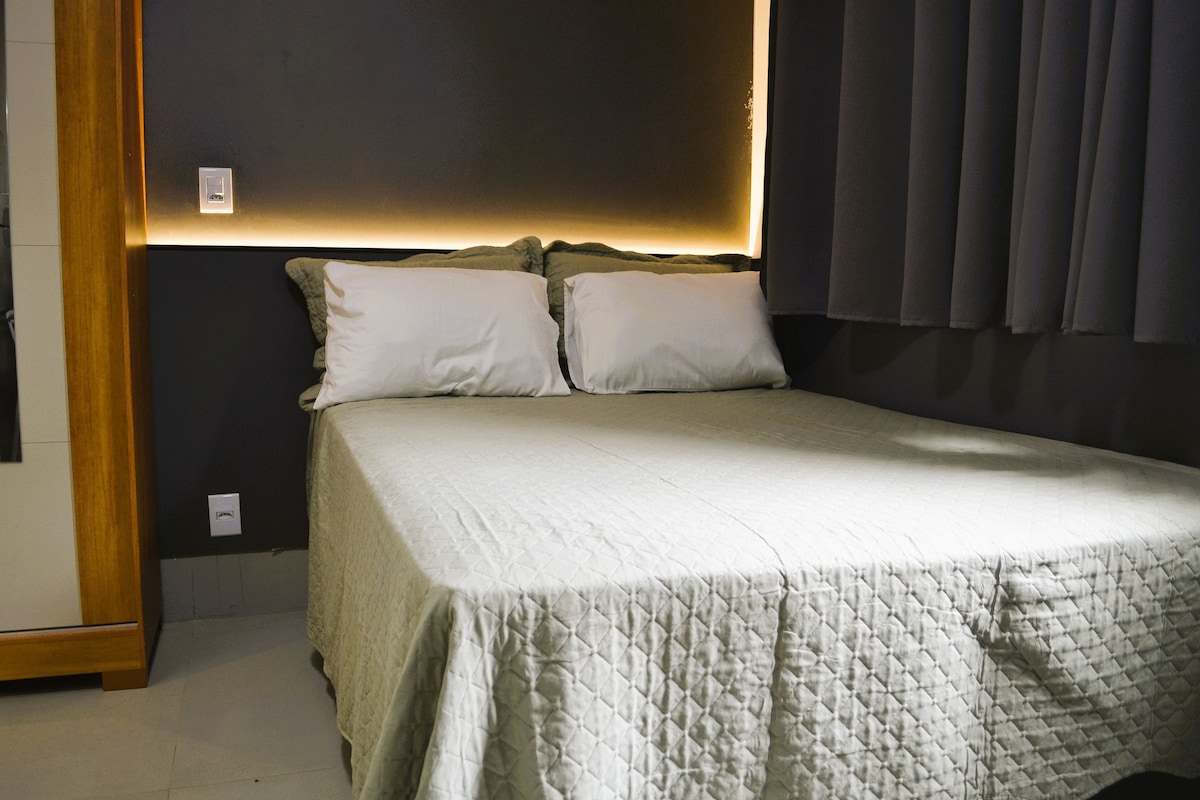 Você vai se sentir em casa neste apartamento tipo estúdio (kitnet) recém-renovado e pensado nos mínimos detalhes. Localizado no bairro Real Grandeza, estamos estrategicamente posicionados bem próximos ao Polo Industrial de Aparecida de Goiânia, sendo a opção perfeita para profissionais em viagem de negócios ou casais que buscam conforto e praticidade.