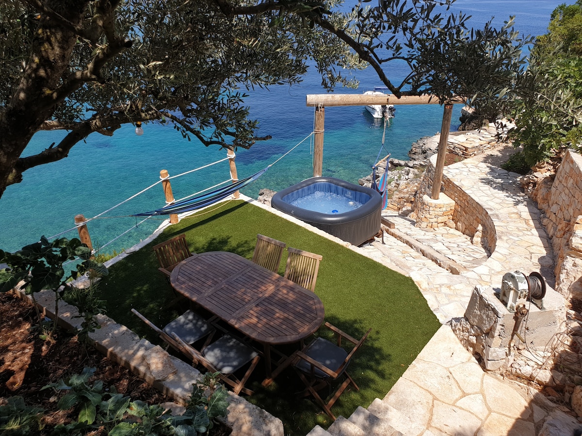 Unique holiday home just a few meters from the sea. The accommodation is located in a quiet bay that used to be a small fishing port, today an oasis of peace is intended for all who enjoy a hedonistic lifestyle. If you want a break from stress and crowds, healthy living based on recreation in the sea and on land, use in healthy food and wines then our house is the right place for you.