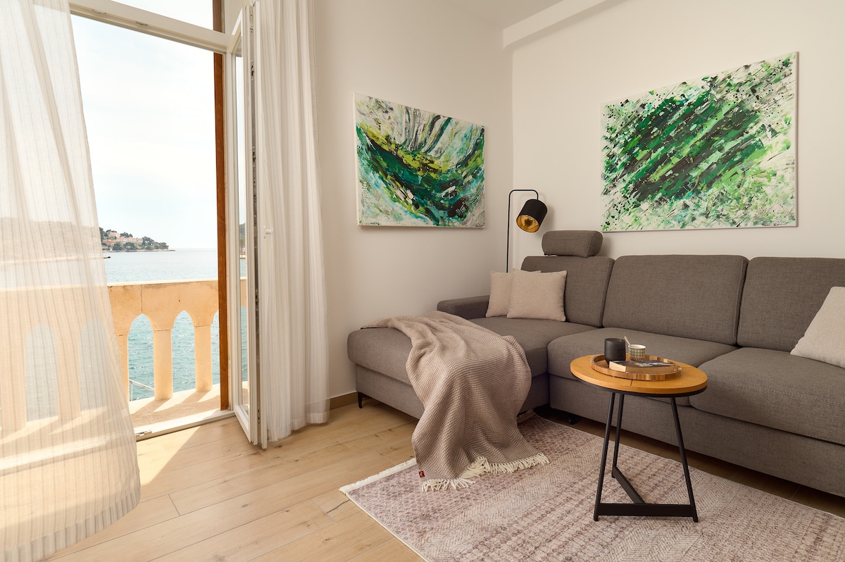 Completely renovated in 2024, mama Marija apartment ensures privacy, utmost relaxation and enjoyment at Hvar town waterfront. Original stone walls of the exterior beautifully complement timeless interior design. Wonderfully spacious and inviting, the apartment includes two balconies which overlook the marina and the old town, two beautifully designed bedrooms, two full bathrooms and a common area which combines a smartly designed kitchen and a living room, perfectly suited for get-togethers.