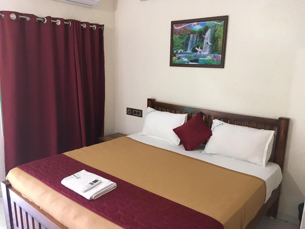 Una habitación acogedora, cuya característica destacada es una gran terraza privada. Podrás disfrutar de los amaneceres o de la brisa fresca del mar, en medio de plantas relajantes en un espacio bellamente diseñado. La habitación tiene una cama tamaño king, armario, mininevera, hervidor de agua y TV de pantalla plana, además de bolsitas de té, café y leche en polvo. El baño tiene un compartimento de ducha separado, geyser, dispensador de jabón de manos y dispensador de gel de baño/champú. Esta unidad se encuentra en el último piso de Maison Souvenir. Tenemos otras cuatro unidades de diferentes tamaños en el edificio.