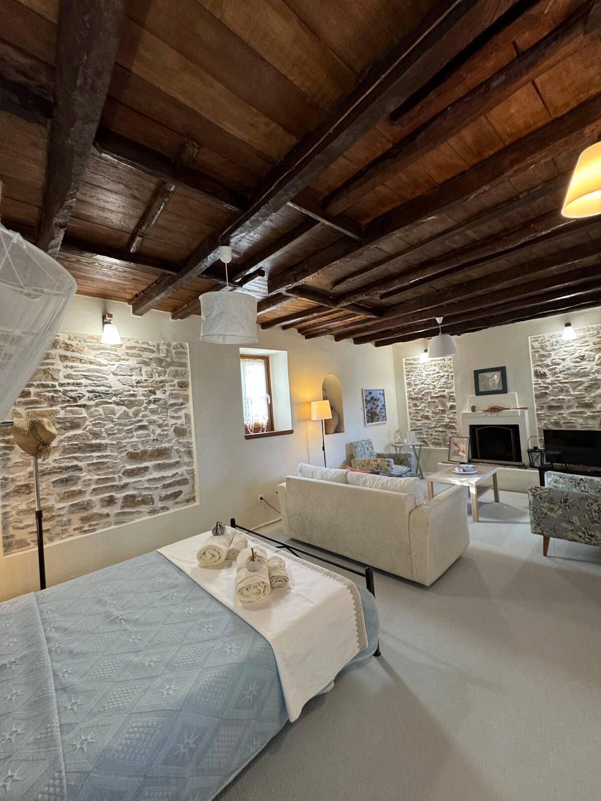 PLEASE READ THE DETAILS CONCERNING THE EXTRA DAILY FEE TO AVOID MISUNDERSTANDINGS!!! The Potter's House is an old traditional, renovated two-storey building with the potter's studio and a gallery space downstairs and a tastefully renovated apartment upstairs. It is situated in the traditional village of Lafkos. near the village square with enormous Plane trees and surrounded by tavernas, a traditional coffee shop and two gift shops. A playground is available at the village square.