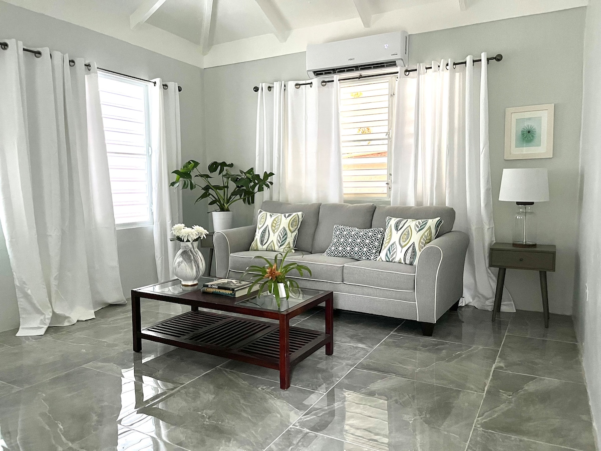 ¡Te damos la bienvenida a tu refugio tropical! Esta nueva casa de huéspedes de 1 dormitorio y 1 baño + sala de yoga adicional y patio privado es tu escapada perfecta a la isla. Ubicado en el corazón de St. Croix, este espacioso refugio ofrece comodidades modernas con hermosos espacios al aire libre para la máxima relajación. Con una ubicación céntrica y a solo 1,7 millas del paseo marítimo de Christiansted, es perfecto para explorar playas, tiendas y restaurantes. Relájate o mantente activo: este acogedor refugio te ofrece lo mejor del Caribe.