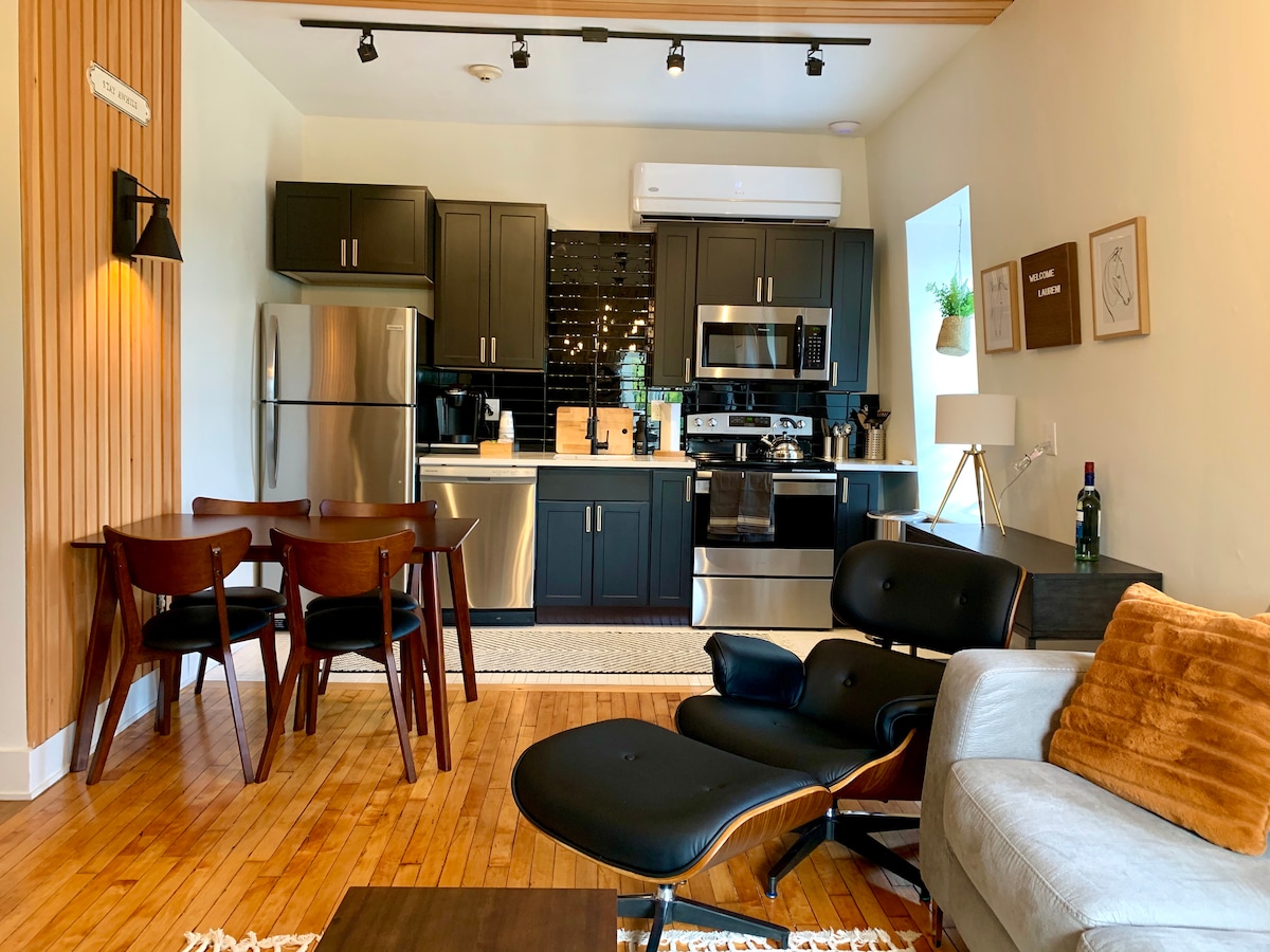 ¡Te damos la bienvenida a la casa William Mason! Situado a pocos pasos de la Universidad Brown y del centro de Providence, se encuentra esta escapada urbana única y lujosa. Está llena de un diseño cautivador, una arquitectura histórica única y una gran cantidad de naturaleza. Esta unidad de aparta-hotel se encuentra en el segundo piso y desprende un aura Art Déco. Ofrece un dormitorio magníficamente diseñado. Una hermosa sala de estar con sofá cama y cocina de diseño también forman parte de este espacio. Disfruta del acceso a una terraza en la azotea iluminada por la noche.