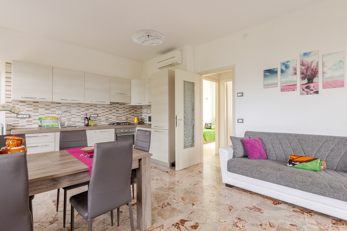 Apartamento totalmente amueblado, dos dormitorios, baño con bañera y ducha, cocina equipada, terraza grande en la que puedes cenar o almorzar cómodamente disfrutando de una vista impresionante. La casa está inmersa en el verde de los olivos, un gran jardín, un espacio de estacionamiento privado, libre y cubierto. Bajando a pie 300 metros, pasando por el centro histórico, se llega directamente al pueblo, en el lago, donde además de la playa hay bares, pizzerías, restaurantes y tiendas de conveniencia. código iD: M0230140214