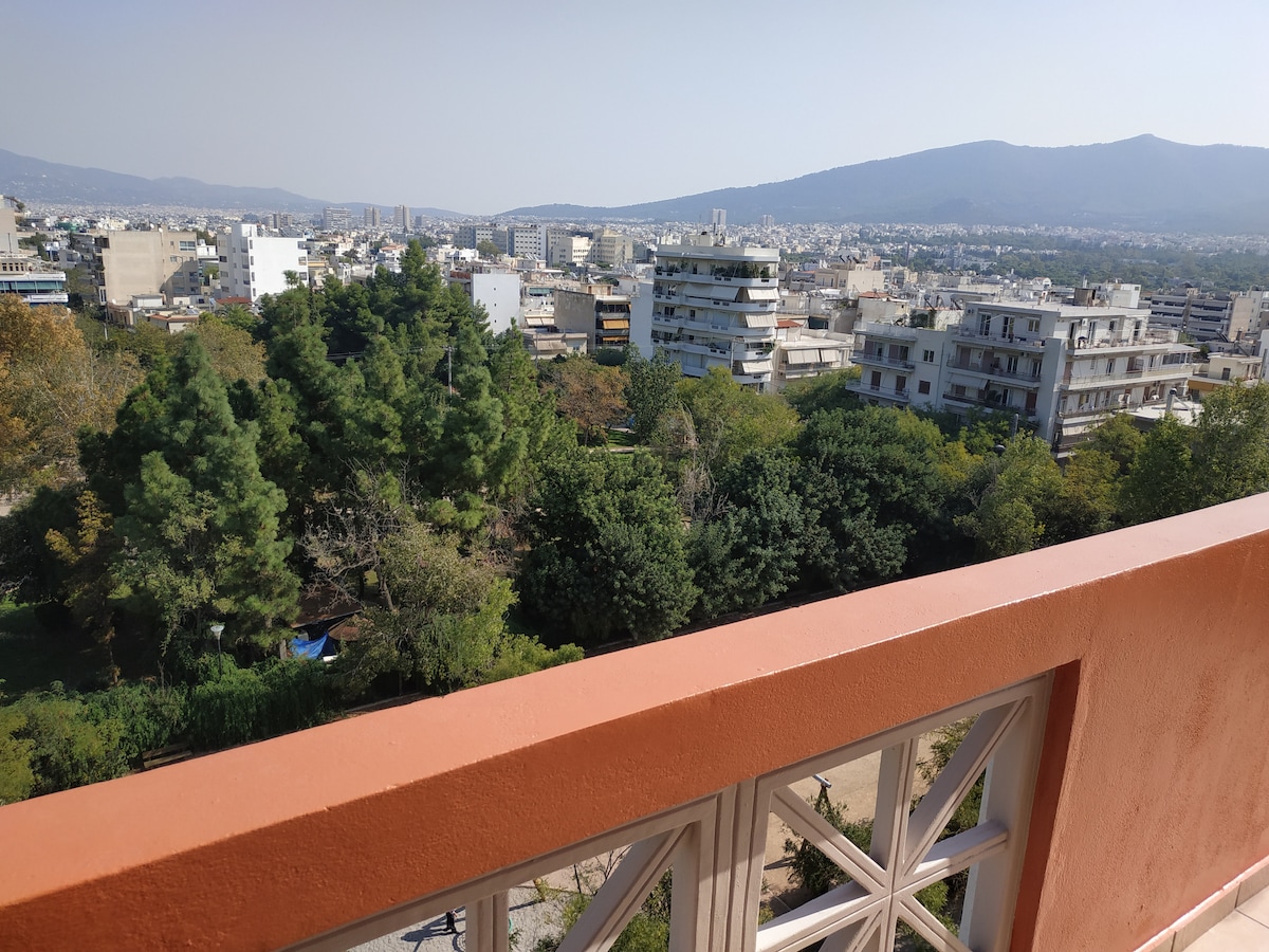 El apartamento es de 22 metros cuadrados y se encuentra en una zona tranquila de N. Psychiko, en el séptimo piso sin bordear otro (apartamento). Tiene una gran terraza con vistas a Atenas. A 5 minutos a pie se encuentra la estación de metro Katehaki. Justo al lado hay un gran parque, que incluye un moderno parque infantil. Hay tiendas de comida y supermercados en el vecindario.