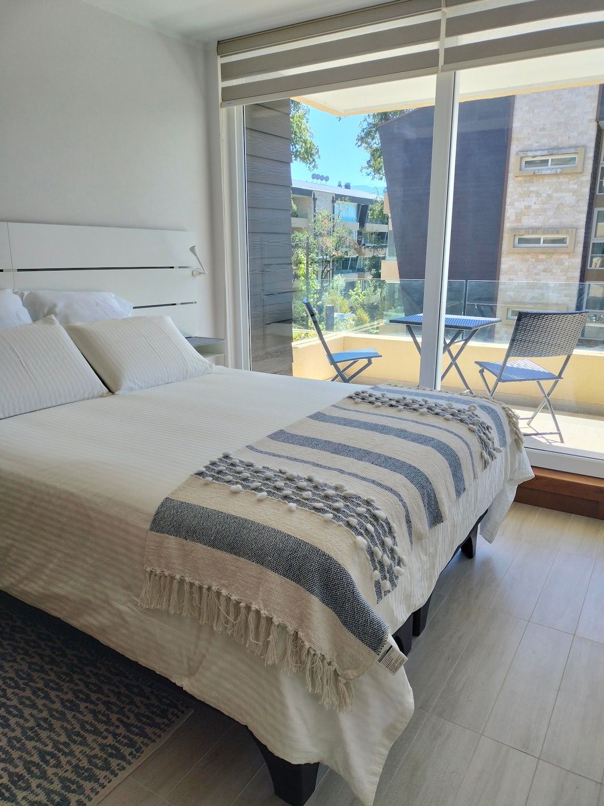 Estiloso y Luminoso Departamento Full Equipado en el centro de Pucón. Queda a 2 minutos caminando del lago y a 5 del centro comercial y casino. Tiene 2 dormitorios y 2 baños, termopaneles para evitar el ruido, piso vinilico, una terraza enorme para asados, y el condominio cuenta con una piscina y un quincho increíble. Puede configurarse para recibir 2 parejas o una pareja con niños. Lo que no podrás ver aquí es el servicio que te damos, somos muy enfocados en que tu estadía sea memorable.