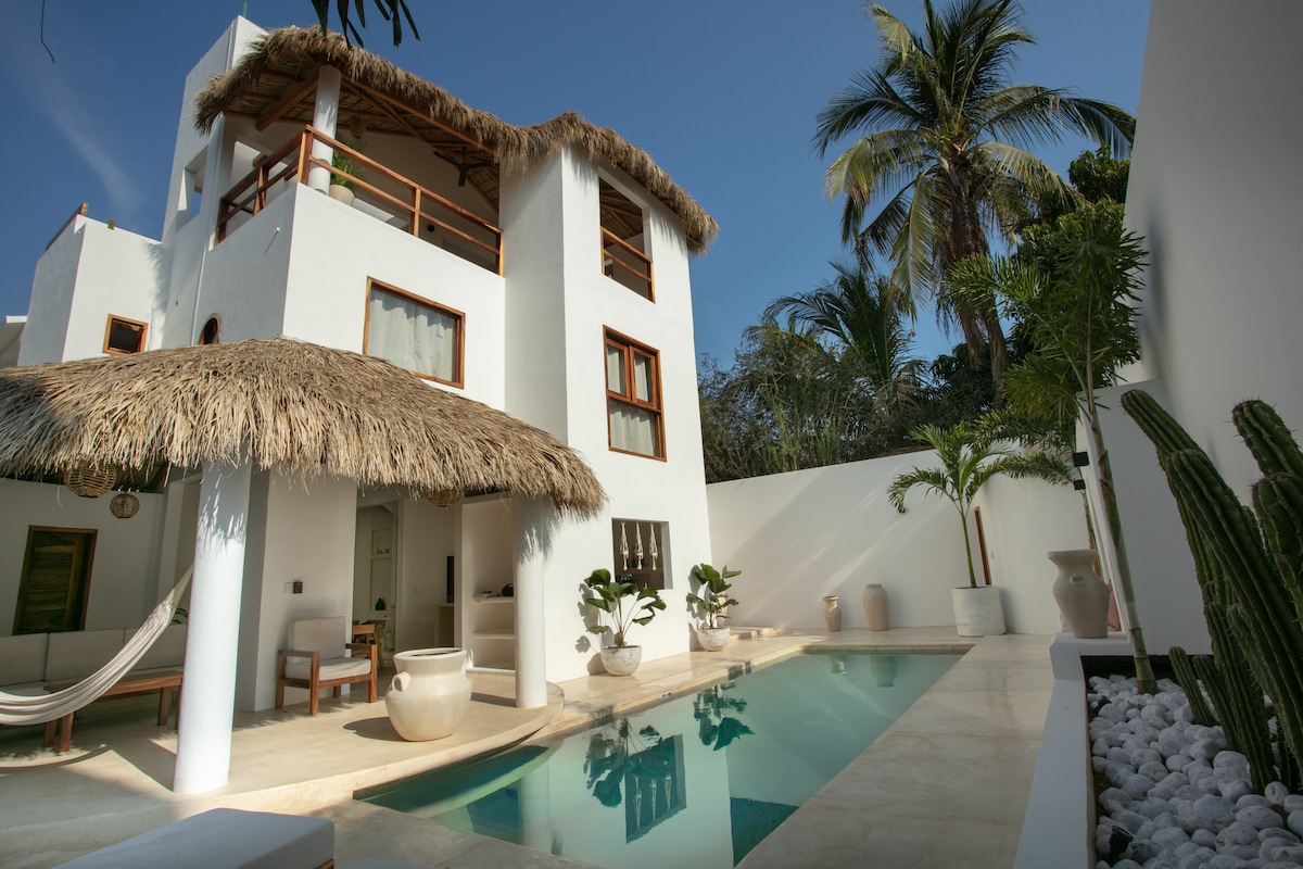 Casa de 3 niveles: playa a 5 minutos, palapa en la piscina y limpieza diaria