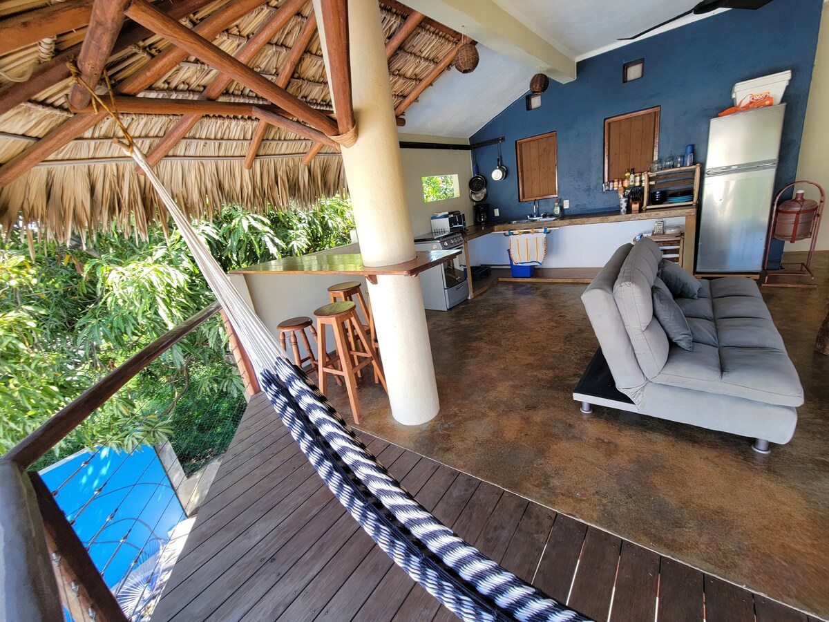 Este es el lugar ideal en Puerto Escondido para solos y parejas. - Espacio privado con hamaca, comedor y asientos cómodos - Te ayudamos a coordinar tu traslado desde el aeropuerto al condo si es necesario - Zona residencial tranquila, a 1.2km de Playa Carrizalillo - Cocina bien equipada con electrodomésticos de calidad, cafetera y licuadora - WiFi, espacios de trabajo aptos para laptops, Smart TV (conectándote a tus cuentas) -Dejamos una sombrilla y toallas de playa, hielera para tus bebidas.