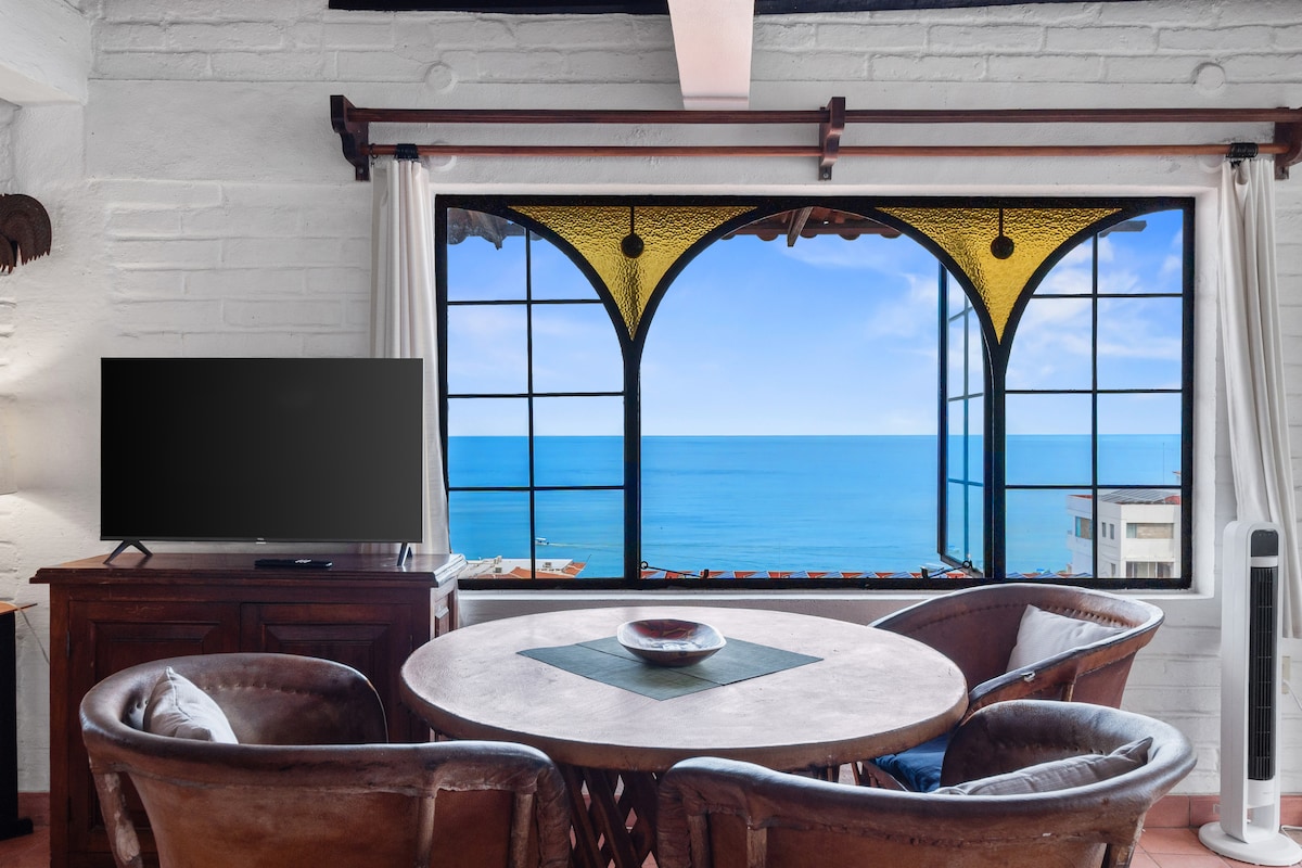 A spectacular PANORAMIC OCEAN VIEW Penthouse Loft steps from the BEACH and MALECON, with your own INFINITY POOL+all services and comforts, fully-equipped kitchen, AC, quality bed, waterfall shower, Wi-Fi, Smart TV, and the BEST VIEWS to admire Incredible SUNSETS and FIREWORKS every night, you may even find some Whales splashing over the Bay from your bed!! Walk to tons of restaurants, shops, art galleries, markets, or sunbathe at the many outdoor spaces, pools and decks... Welcome to Paradise!