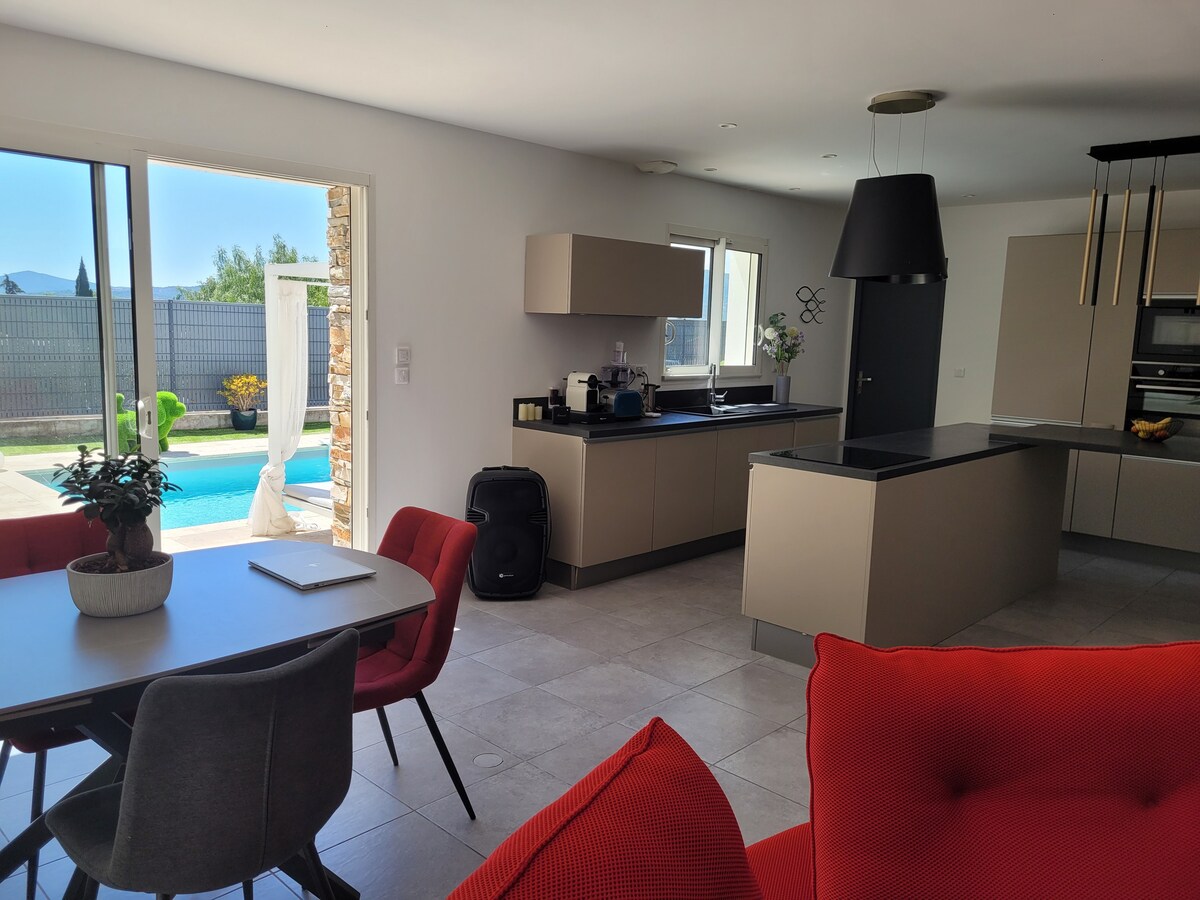 Villa Leoni — brand-new air-conditioned villa with private pool and garden. 4 bedrooms with wardrobes and new bedding, 2 bathrooms, spacious OLED TV lounge, fully equipped kitchen. EV charging station (7.4 kW) on site. 2 min from the motorway: Fréjus beach in 10 min, Saint-Raphaël in 15 min, Saint-Tropez in 45 min. The perfect base to explore the French Riviera. ☀️