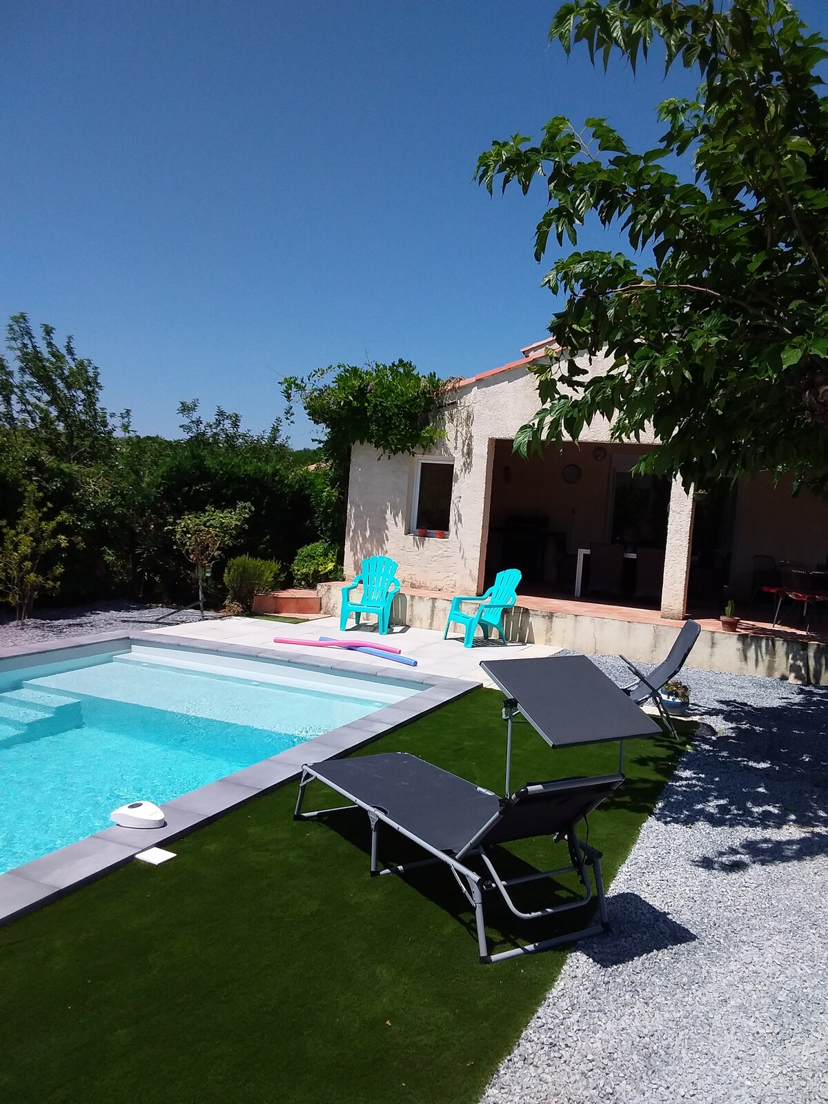 Disfrute en familia o con amigos de este fabuloso alojamiento con piscina que ofrece buenos momentos en perspectiva. Situado entre el mar y la montaña. A la entrada de un pequeño pueblo con siete colinas en el corazón de un viñedo con carácter. Tiendas cercanas en el pueblo. (tienda de comestibles con despacho de pan y tabaco. peluquería. pizzería. bar A 10 minutos de Béziers , a 30 minutos de las playas y a 1 hora y media de la montaña. 10 minutos de la autopista en dirección a Narbona Carcasona Montpellier.