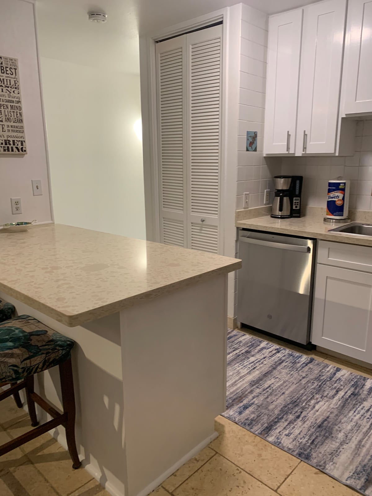 Disfruta del descuento del 17% (ya que pago los impuestos de los ingresos de tu pago, a diferencia de la mayoría de los otros anuncios que lo agregan). No te dejes engañar por los otros estudios más pequeños con solo un nicho que apenas se adapta a una cama. Este es el modelo más grande de un dormitorio en Pats. Este hermoso condominio frente a la playa es la unidad más preferida ubicada en el otro extremo de la planta baja, a solo 30 pasos de la playa de arena blanca y polvorienta con la única puerta orientada al este. Estacionamiento asignado cerca. Evita las largas esperas en el ascensor