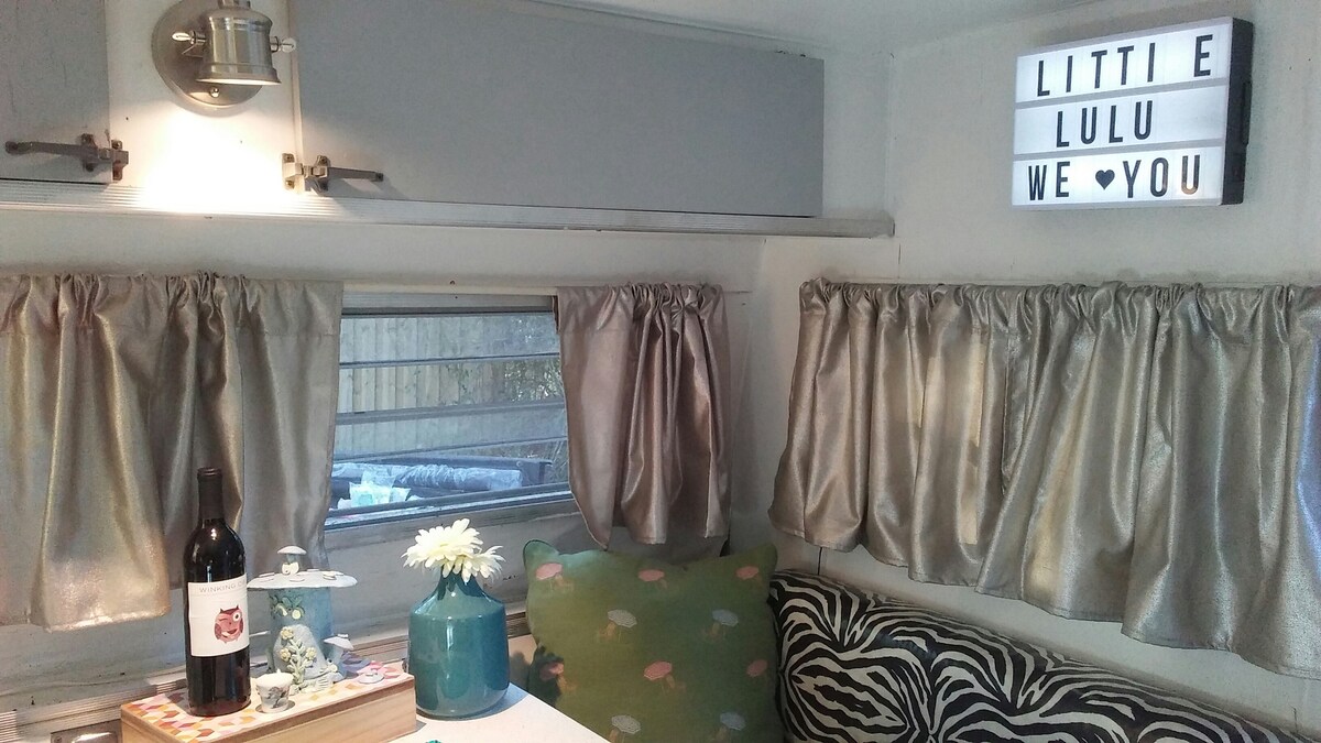 Pasar el rato junto a la fogata haciendo s'mores, escuchando los clásicos en la estación de radio local. Sumérgete en la naturaleza y escucha a los pájaros y los grillos mientras disfrutas de este Aristocrat Lo liner de 1968. Decorado con un tema caprichoso que representa a Little Lulu, la vieja caricatura sobre una niña que siempre se metía en problemas.