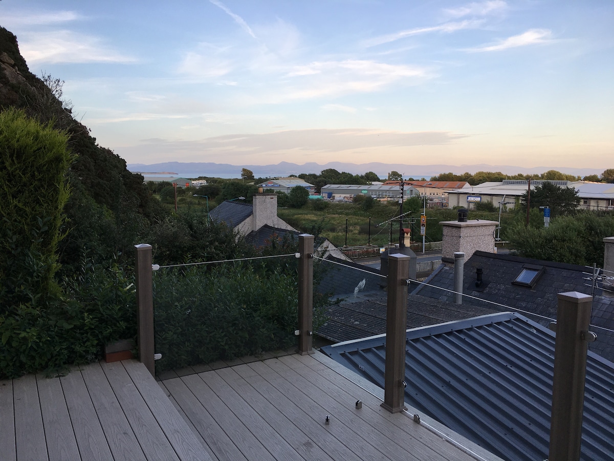 Marina Terrace is situated high on a hill overlooking the town of Pwllheli, Marina, Sea and Mountains beyond on the beautiful Llyn Peninsular. Unbelievably private, quiet and convenient for the town and its bars and restaurants. Only a 10 minute walk to the beach and Sailing Club, Marina Terrace is the ideal location. Dog friendly & EV charger. Pwllheli is a busy market town with an impressive marina, two glorious beaches and the perfect location for sailors, walkers, golfers and families.