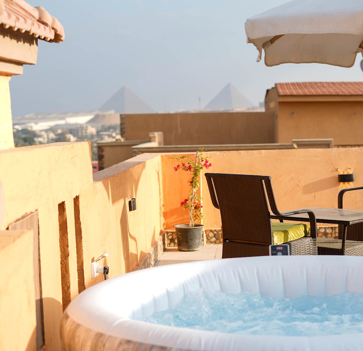 private rooftop with jacuzzi and pyramids view