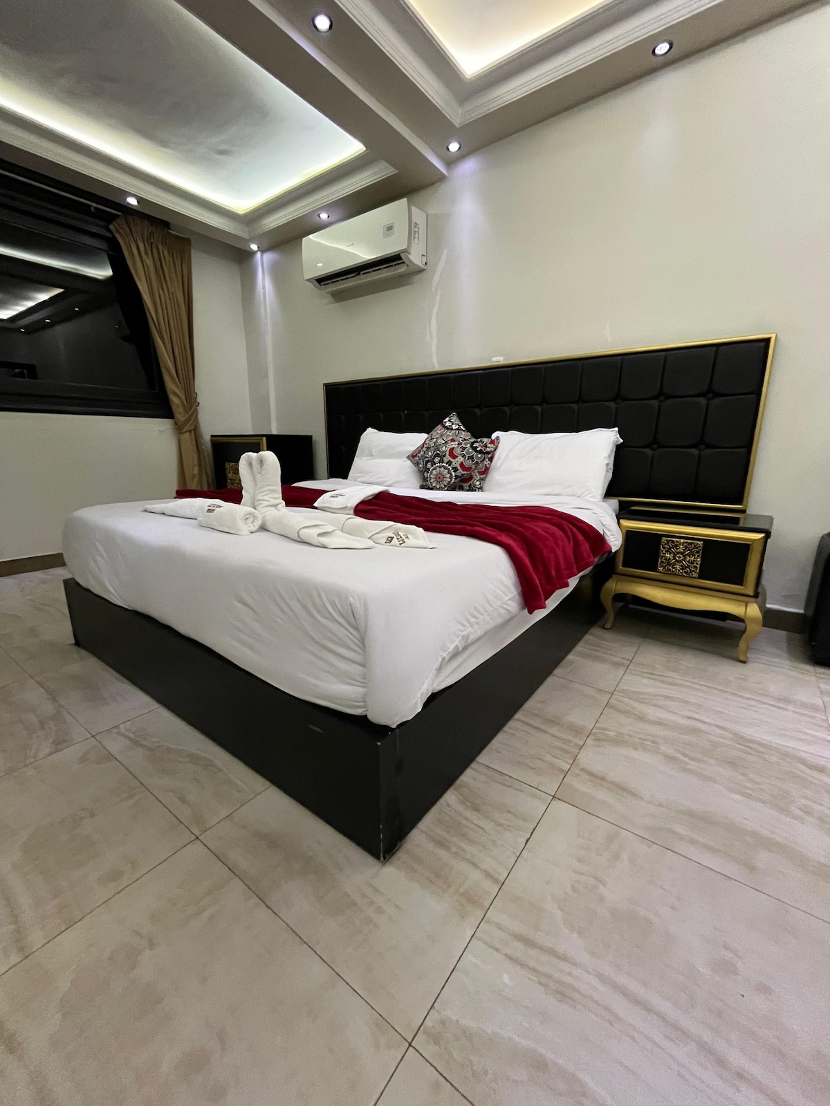 Apartamento de 3 dormitorios bellamente diseñado en el corazón de Nasr City, perfecto para familias y grupos. Disfruta de un amplio balcón, wifi rápido, cocina moderna y cómodo salón, a solo unos pasos de los mejores centros comerciales, restaurantes y todas las atracciones de la ciudad. 🏡 El espacio Ubicado en el cuarto piso de un edificio con ascensor, este apartamento recientemente amueblado es una verdadera mezcla de estilo y funcionalidad: 🛏 Dormitorios Dormitorio principal: cama tamaño king, baño privado, cómoda grande, aire acondicionado y sábanas suaves.