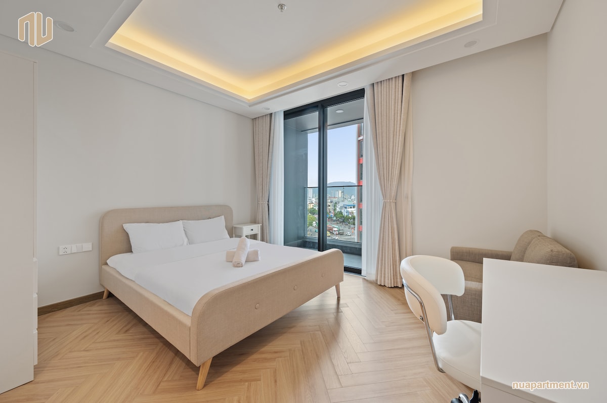 Modern, stylish 120m² condo on the 30th floor with stunning views! 3 bedrooms, 4 beds—perfect for families or groups. Located in the heart of Da Nang, just minutes from Han River, Dragon Bridge & APEC Park. My Khe Beach only 9 mins away. Enjoy spacious living, full amenities & access to a shared swimming pool. 🧹 Daily trash removal and towel replacement upon request ★ Panoramic views | Central location | Pool access ✈️ Free airport pick-up from 3 nights.