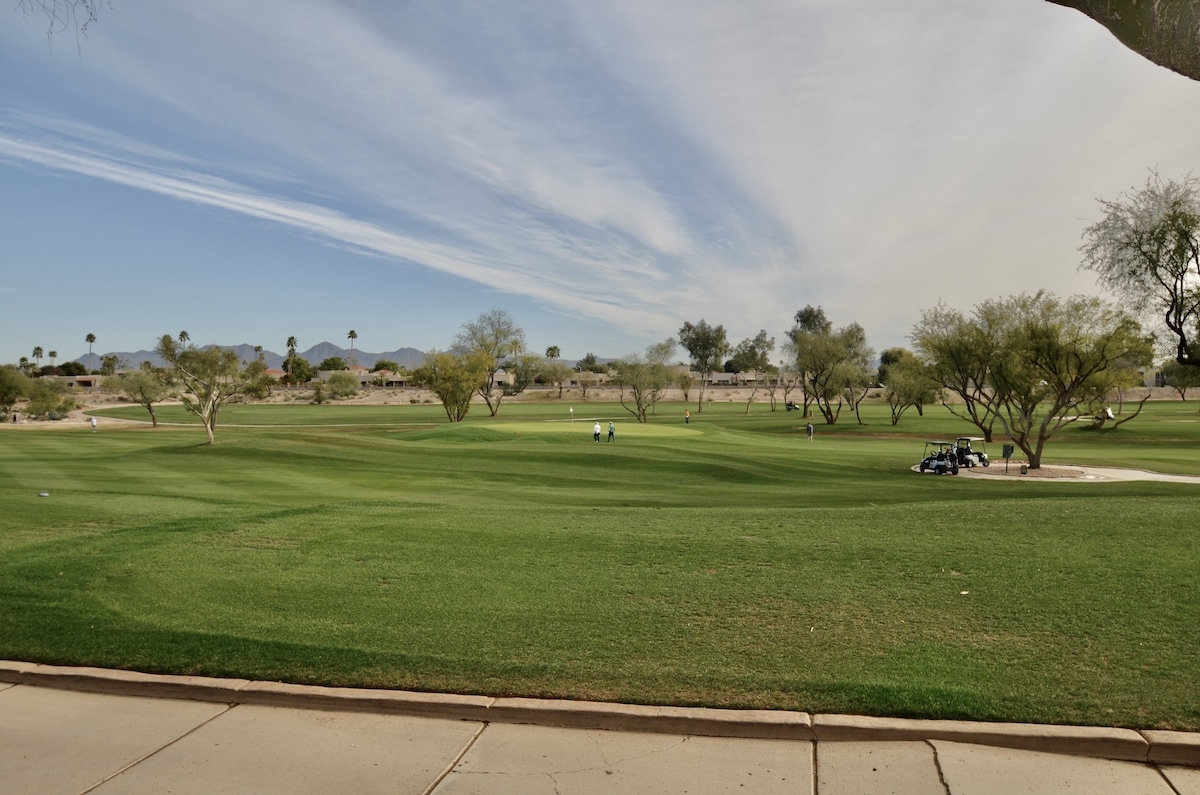 Oasis del desierto con piscina privada (no climatizada), zona de barbacoa, cocina completa, cama tamaño king con colchón Tempur-Pedic en el dormitorio principal con ducha a ras de suelo, bañera grande y asas para discapacitados en cada baño para tu comodidad. A poca distancia a pie del PARQUE, a 4 millas del CAMPO DE GOLF, a menos de 5 millas de SCHNEPF FARMS con ZOOLÓGICO INFANTIL, a 3 millas de ALIMENTOS y COMPRAS, a 12 millas del COMPLEJO DEPORTIVO LEGACY, a 29 millas de SALT RIVER TUBING. 4 dormitorios, 3 baños completos, Pack n Play, wifi, TV por cable, aire acondicionado, zonas coloridas para hacerte selfies geniales.