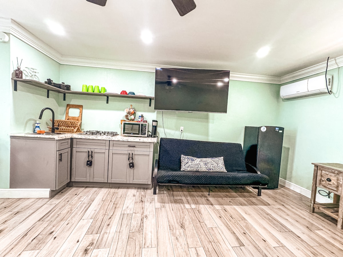 Un lugar cómodo totalmente climatizado, seguro y tranquilo en una ubicación céntrica. Este apartamento de 1 dormitorio tiene una cocina equipada con estufa, horno, microondas, nevera, utensilios de cocina, lavadora y secadora. Ven a relajarte en un espacio fresco con Netflix gratuito en el dormitorio y la sala de estar. Este alojamiento está convenientemente ubicado a 15 minutos en coche de las playas y del centro de Nassau y a 5 minutos en coche de restaurantes de comida rápida, bancos, el supermercado local y la farmacia. Está prohibido fumar en cualquier lugar de la propiedad.